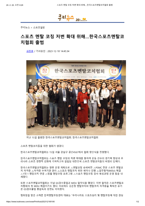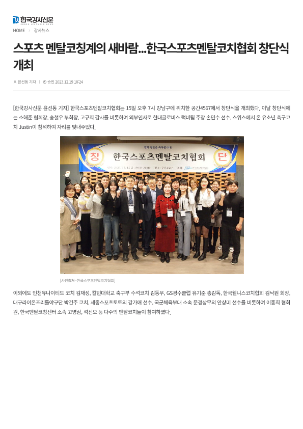 스포츠 멘탈코칭계의 새바람...한국스포츠멘탈코치협회 창단식 개최